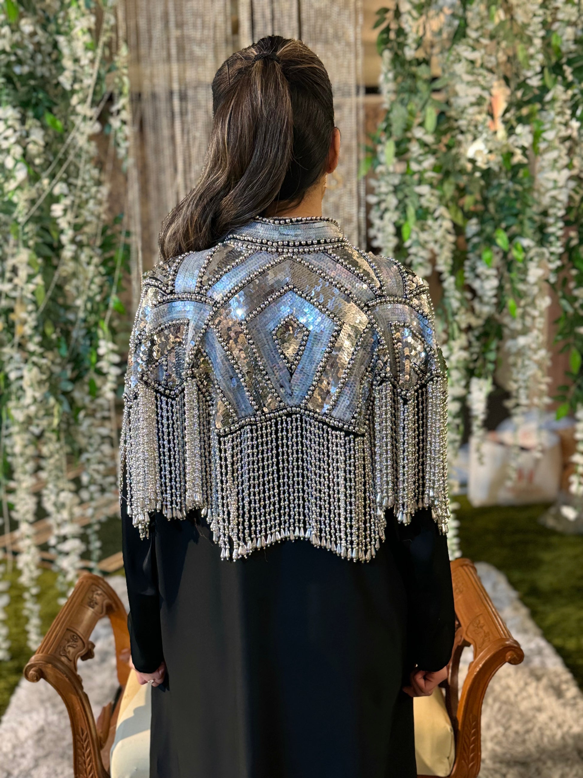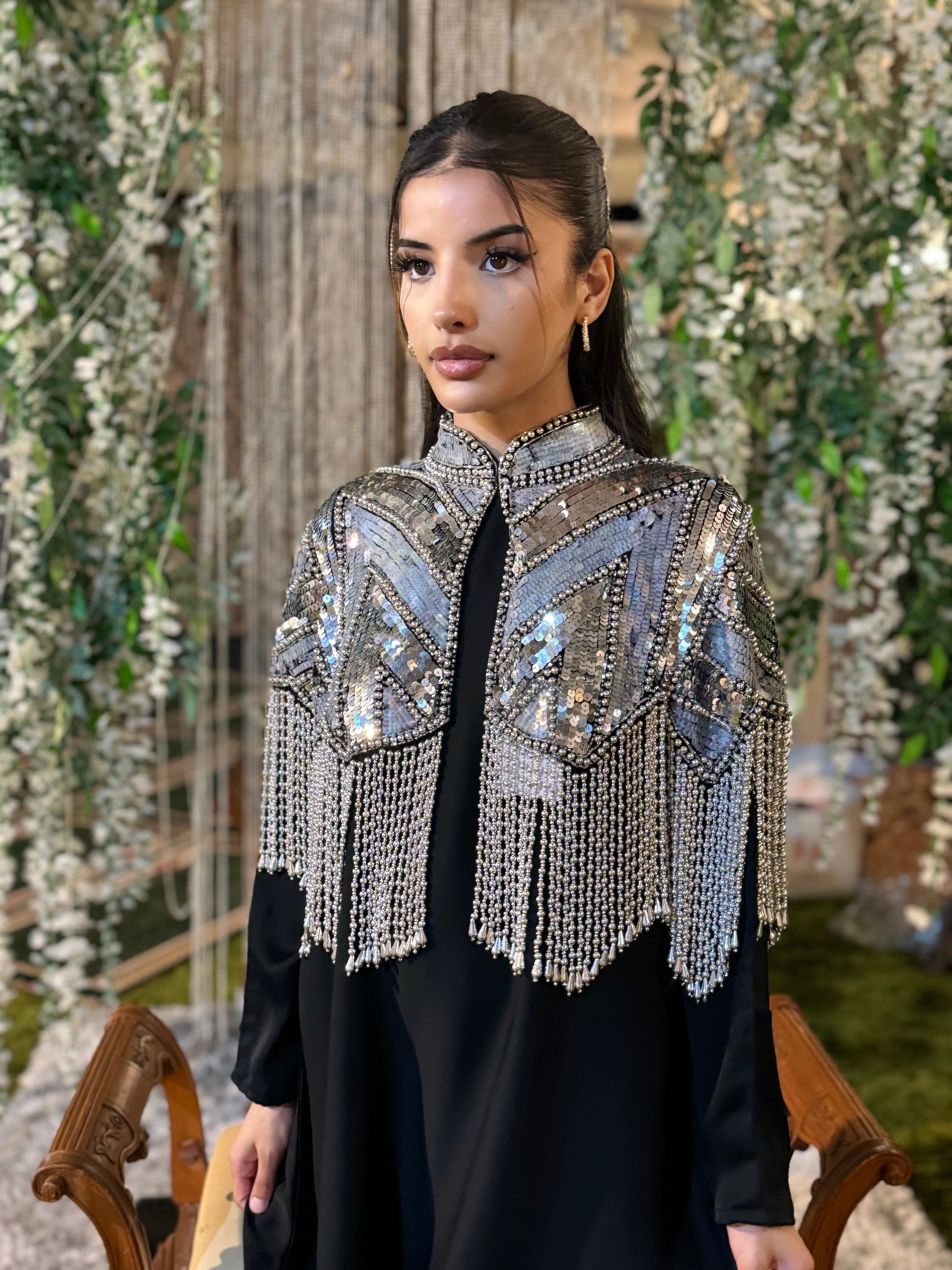 Experience regal elegance with this luxurious regal embellished cape. Featuring intricate beaded detailing, this eye-catching piece will make you feel like royalty! Add a touch of glamour and opulence to your look with this stunning cape!